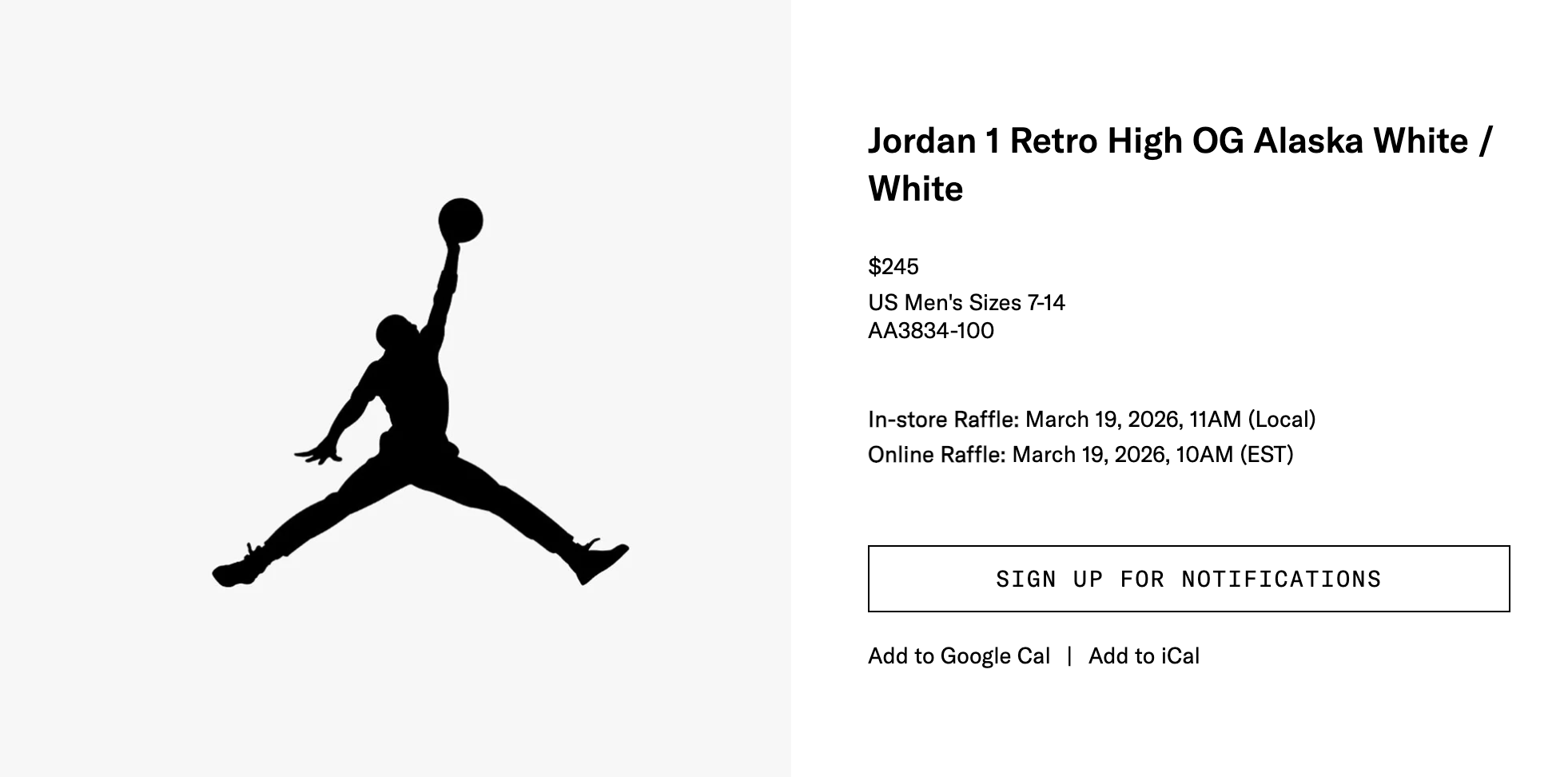 The Virgil Abloh Archive x Air Jordan 1 High “Alaska” release is set to release on March 28th 2026 via SNKRS & select retailers. Stay updated and check the raffle guide as soon as the first raffle has started. Don't miss your chance to secure a pair!